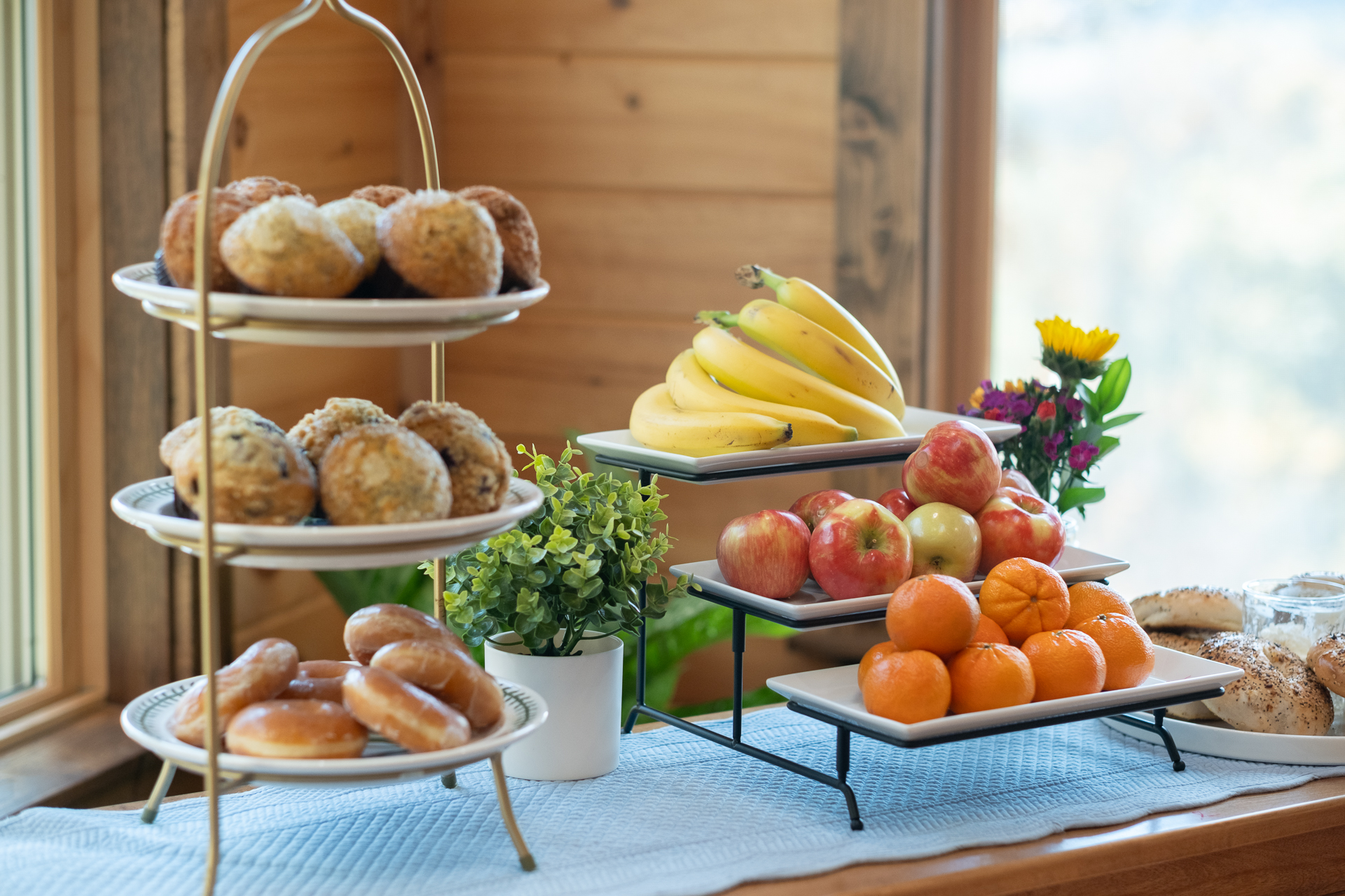 Our all-inclusive retreats feature meals prepared by a private catered chef: social hour with hot appetizers, chef dinner, hot breakfast, snacks, and soft drinks. Enjoy breakfast on the upper deck, dinner on the lower deck or in the great room, and let us handle the planning, shopping, and cleanup.