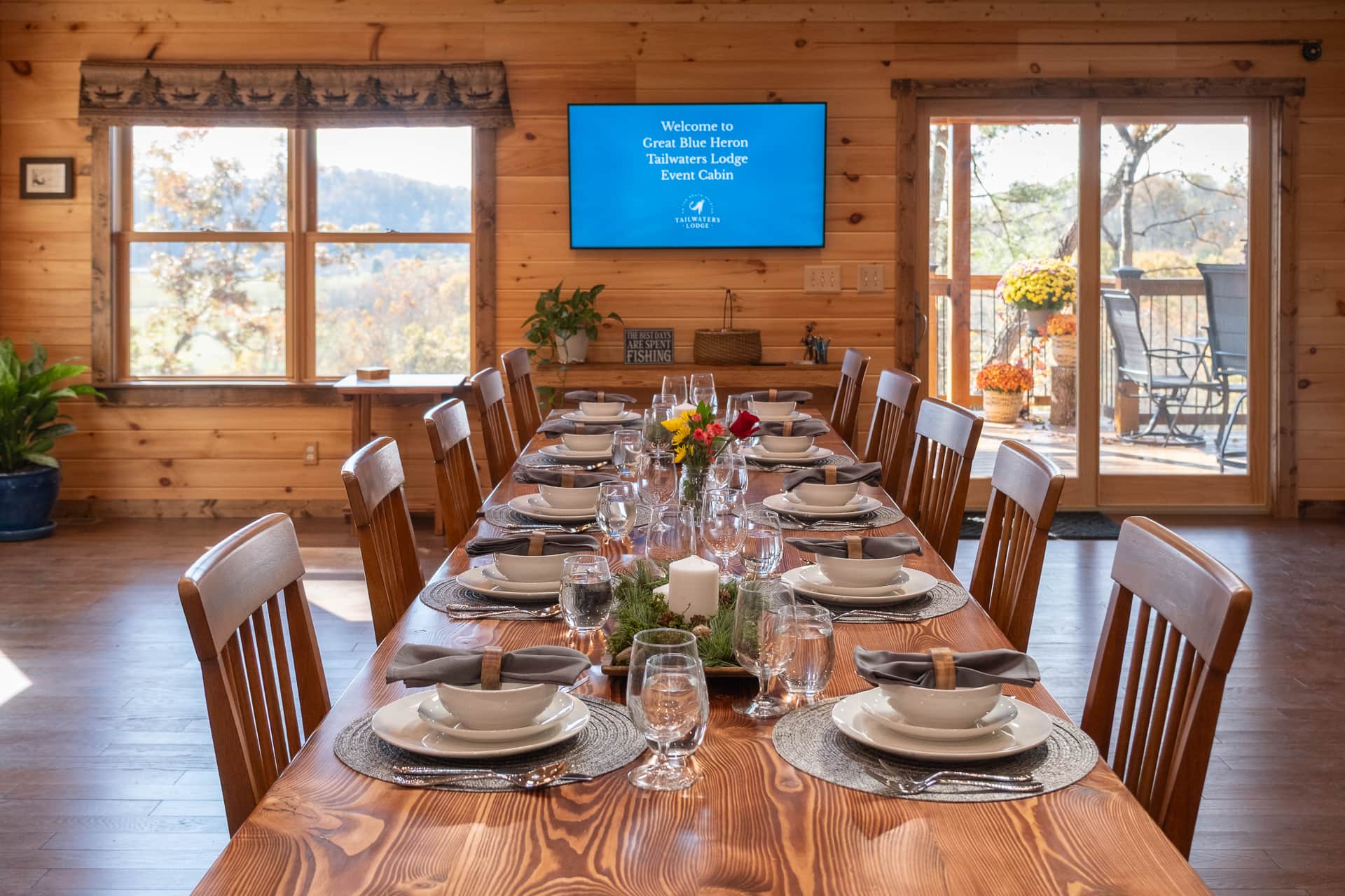 Perched above the South Holston River with sweeping mountain views, the Great Blue Heron cabin is Tailwaters Lodge’s dedicated home for group retreats and corporate off-sites. Meet in a bright, natural-light great room, dine on expansive decks, and let our team handle the details—from chef-prepared meals to unforgettable river experiences.